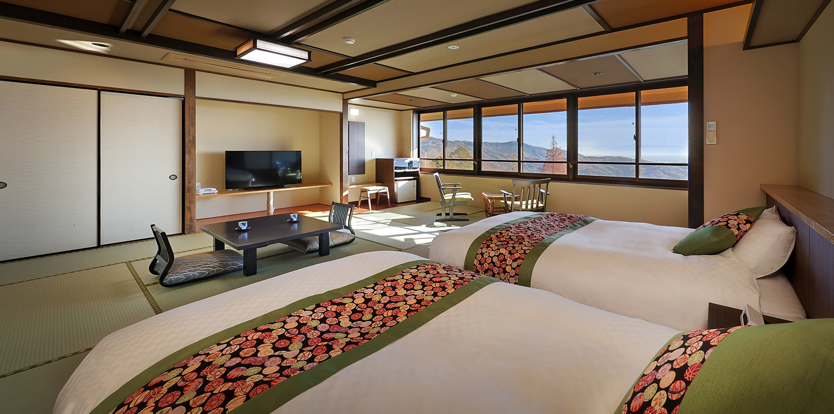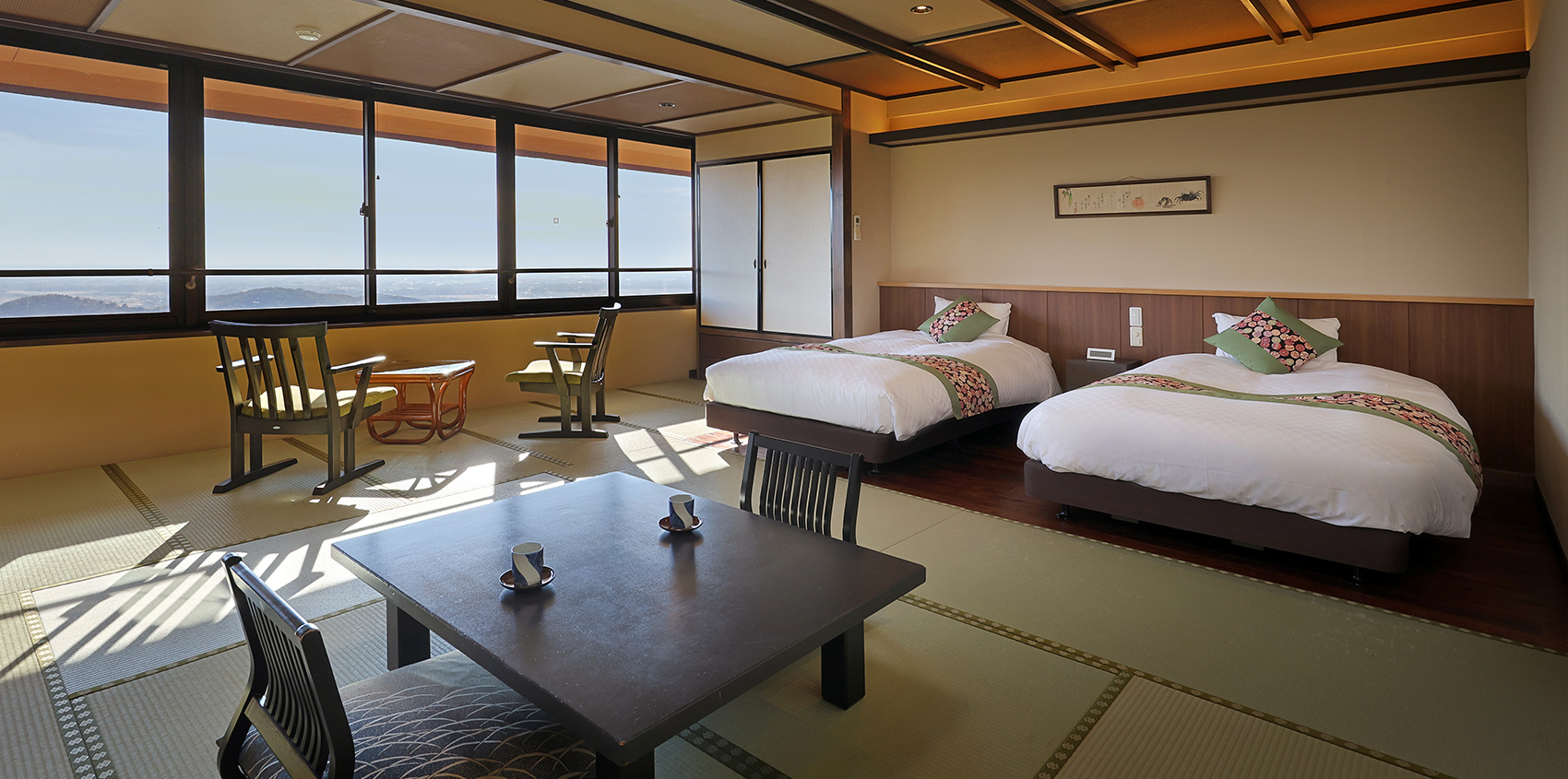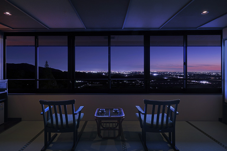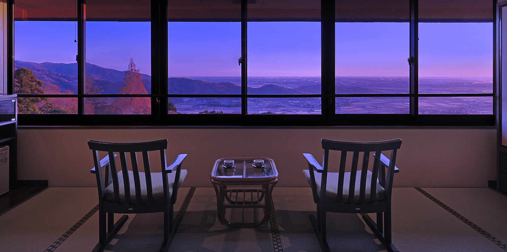当館最上階。関東平野の雄大な景色を眺められる和洋室タイプのお部屋です。