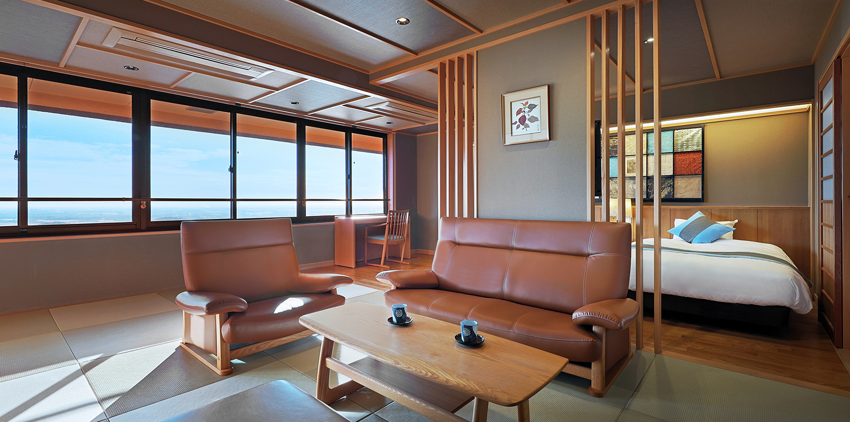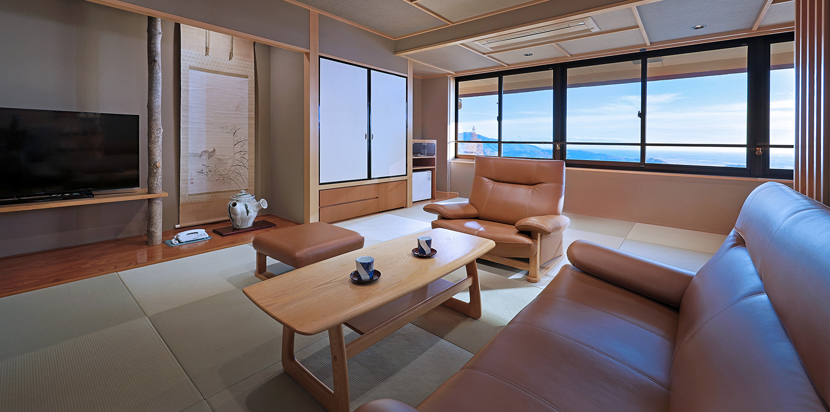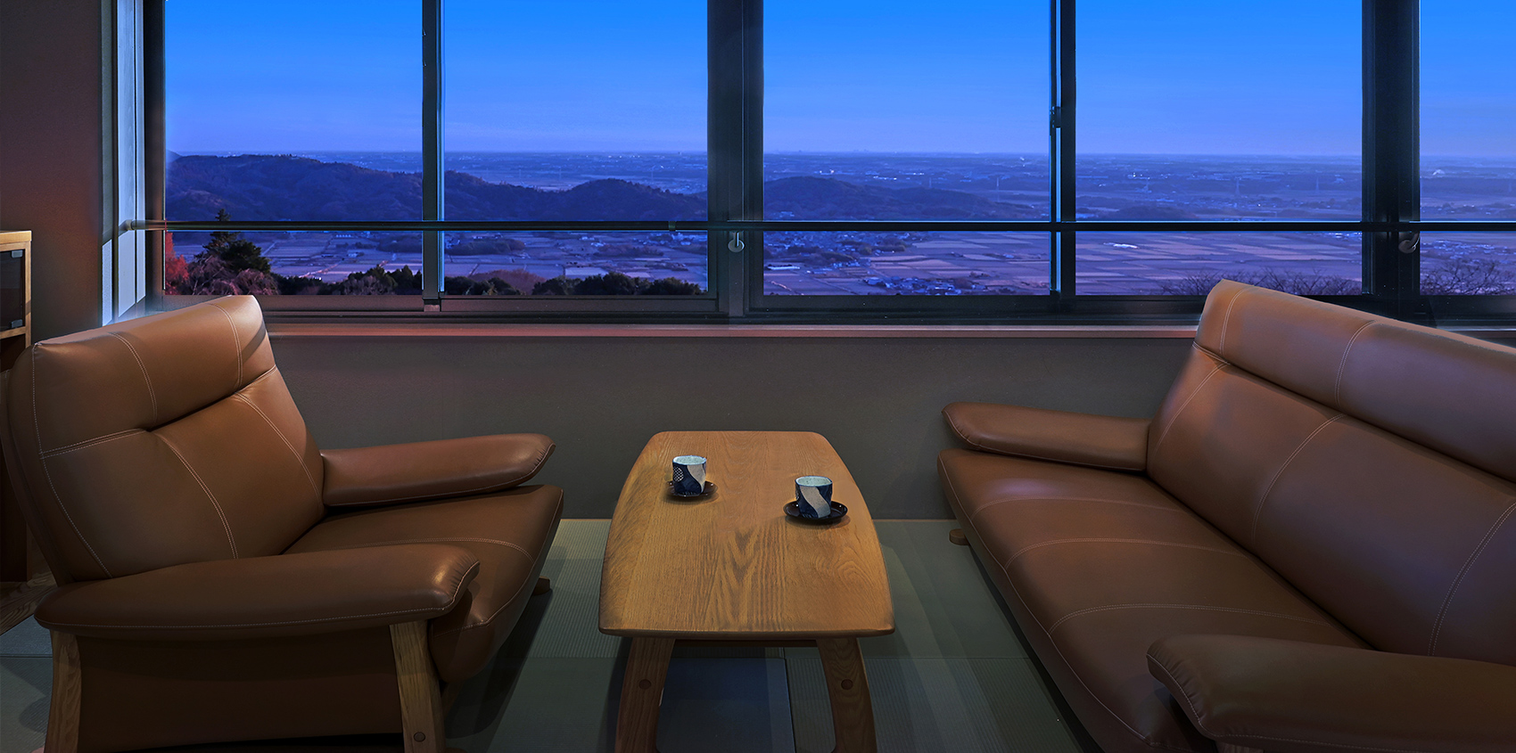 当館最上階。お部屋から関東平野の雄大な景色を眺められるスイートルームです。