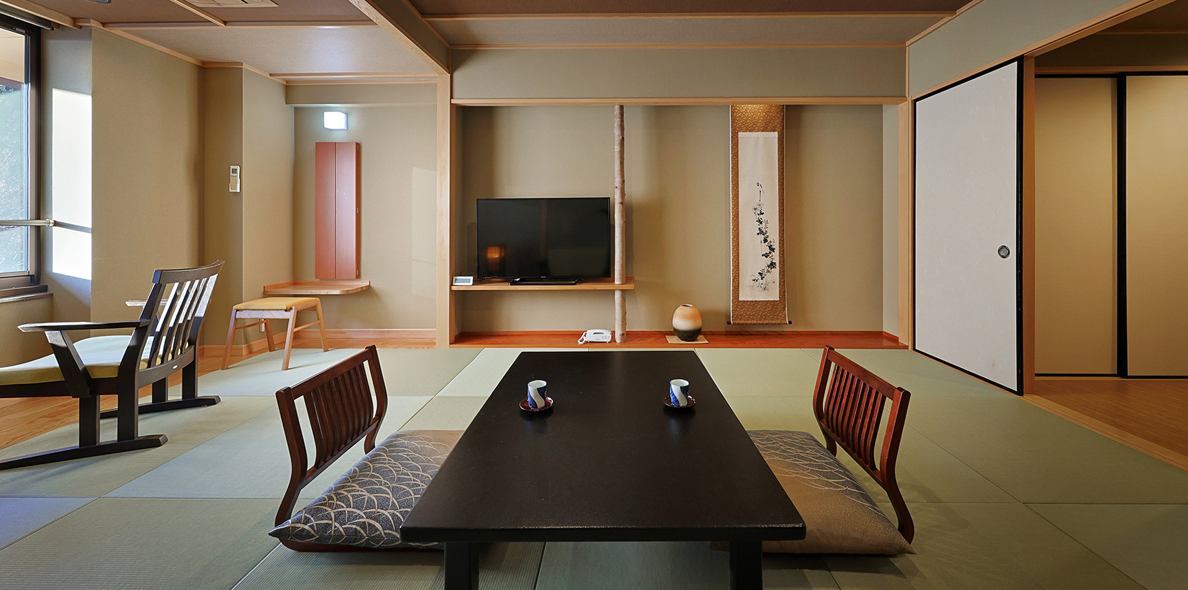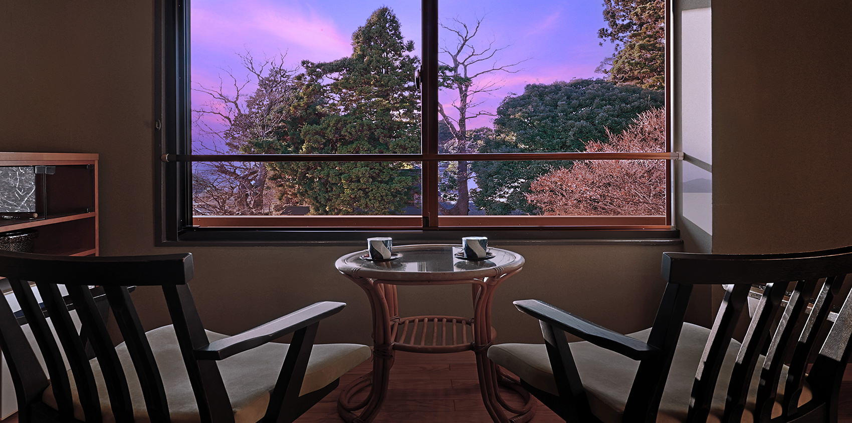 当館最上階。お部屋から関東平野と筑波山神社側のどちらも望める和室タイプのお部屋です。