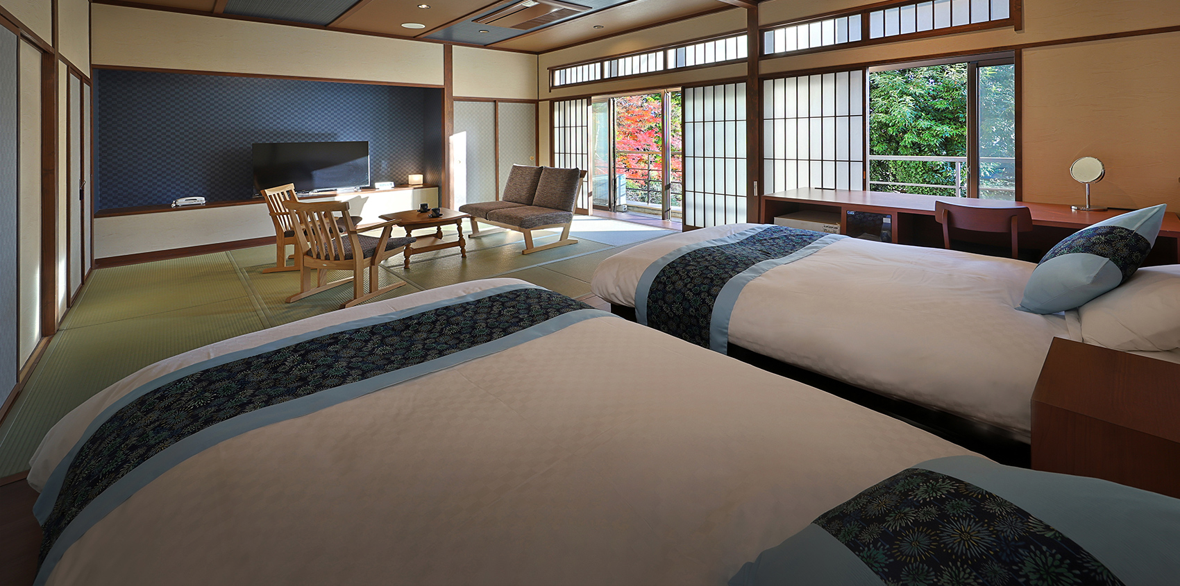 2022年3月にリニューアル。和と洋の趣を取り入れた落ち着きのある和洋室です。