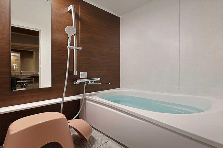 ミニキッチンカウンター/シャワー付ユニットバス/シーリー製121cm幅・長さ203cmベッド×2台/エキストラベッド×2台/ウォシュレット付トイレ/大型ハイビジョン液晶テレビ/冷暖房/電話/冷蔵庫/湯沸しポット/ヘアドライヤー/金庫/湯茶セット